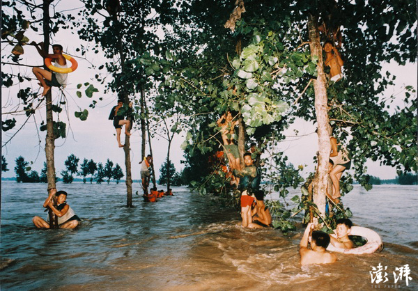 8月1日20时20分,湖北省嘉鱼县簰洲湾长江干堤决口。空军某部指导员高建成等17名勇士和2名某部舟桥旅的战士,用年轻的生命换取了53000名群众的平安转移,这是他们留下的最后一张照片。 李靖 摄