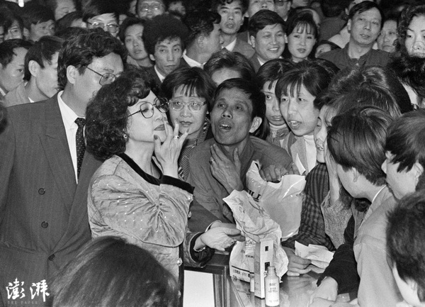 股市红火,上海万国证券外聚集了大量股民。1992年,中国资本市场刚刚起步,新股发行还处于摸索阶段。沪深两地出现了一种新事物——“新股认购抽签表”,股民通过购买抽签表可以获得申购新股的权利。在当时,一级市场申购到的新股,在二级市场就意味着财富的成倍增值。 于文国 摄