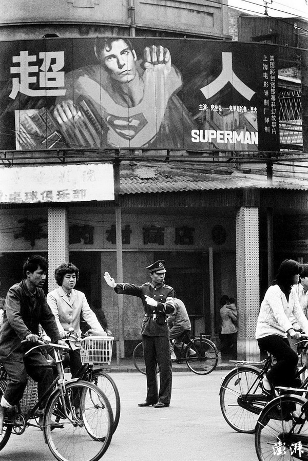 从美国引进了第一部好莱坞大片《超人》,电影广告画高悬在广州街头。 安哥 摄