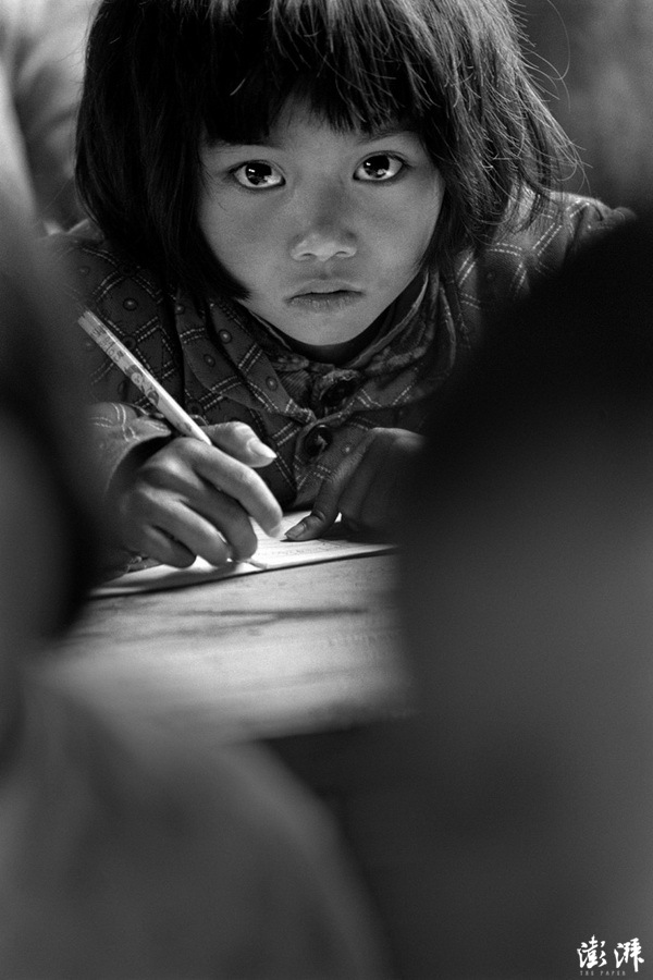 安徽省金寨县三合乡张湾小学,“大眼睛”苏明娟在伏案学习。之后,这张照片成为“希望工程”的公益照片。如今34岁成家立业的苏明娟,当选为共青团安徽省委副书记(兼职)。她的命运是中国扶贫工程的时代缩影。 解海龙 摄