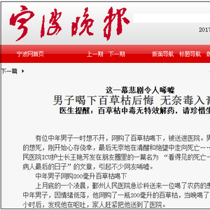 据《宁波晚报》报道,宁波一中年男子因情绪低落网购一瓶百草枯并且喝了下去,送到医院后经抢救生命体征稳定,本以为已经没有危险了的男子却从第二天开始恶化,直到第十天最终离开人世……