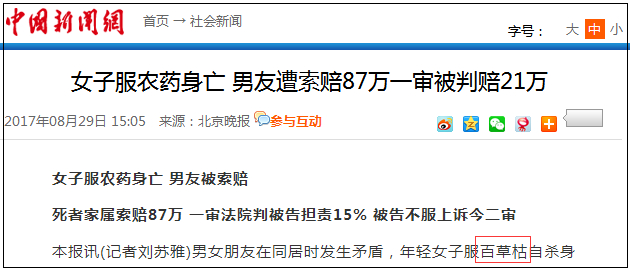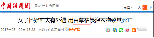 百草枯是一种快速起效的除草剂,对多种杂草都有效,能迅速被植物绿色组织吸收,使其枯死。因为价格便宜,药效好,在农村地区普遍使用。但是近年来出现多起人服用百草枯中毒身亡的事件。