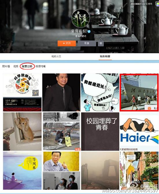 网友还发现,“h301304”所点过赞的图片中,包含一张河北科技大学校门口的照片。不仅如此,网友还发现,“h301304”一条发布于2015年的微博,指向了一则上传到土豆网的古琴曲,上传的用户名为“槐北路”。而“槐北路”正是韩春雨在百度贴吧的网名,“槐北路”多次公开表示,自己是韩春雨本人,且曾以“槐北路”身份在贴吧回应NgAgo无法重复的争议问题。并且,韩春雨本人也多次在公开场合表示自己爱好古琴。