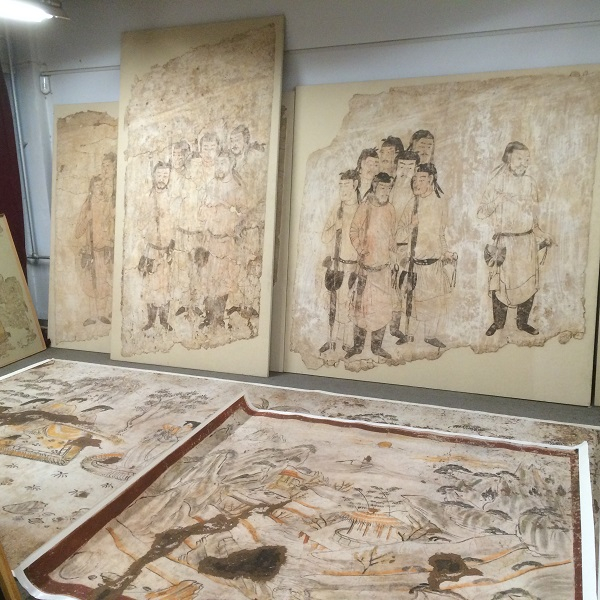 这诸多隋唐壁画名迹之外,陕西省考古研究院也收藏着目前可见中国最早的壁画之一——相当于夏时代的石茆壁画残片,以及西汉、东汉以及南北朝等时代的诸多壁画。