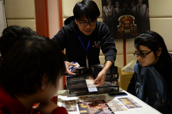 “世路寒”告诉记者,他们也是参考了这种形式以后,组建了Shadow桌游联盟,把大陆的设计师组织在一起,然后共同走出去参展,共同讨论测试。Shadow成立至今已经历了一年半的时间。2016年,“世路寒”带着Shadow设计师去参加了在东京举办的“Game Market”桌游展,这次的“Shadow Market”桌游展也是参考了 “Game Market”的模式。“大家平常的时候都是个人,自己做一些个人的作品。在这段时间,我们发觉把力量集结和在拧成一起的确是有行之有效的。”