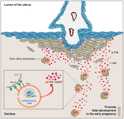 图1: 蜕膜NK细胞在妊娠早期通过分泌生长因子促进胚胎生长