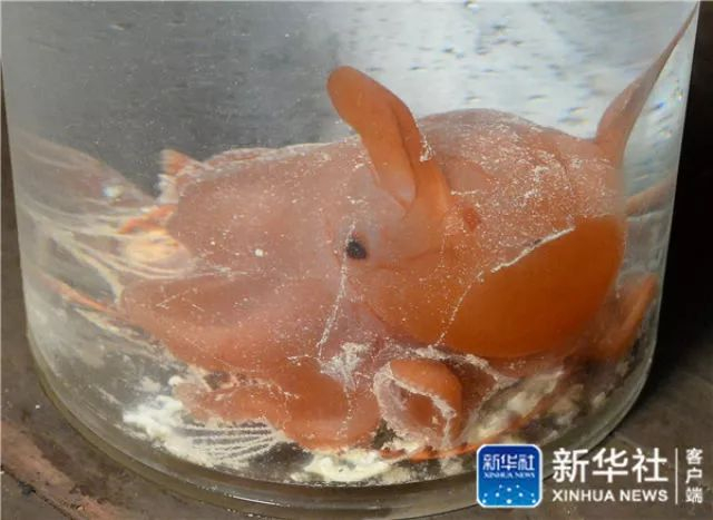 在西太平洋的卡罗琳海山,“发现”号还抓取了一只“萌萌哒”的深海“小飞象”,它的两个鳍如大象的两个耳朵,在水中摇曳。其实这只“小飞象”和预测世界杯的“保罗”是一家,都是章鱼,只不过“小飞象”是烟灰蛸属章鱼,非常罕见。
