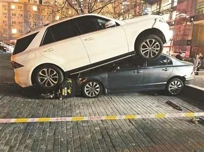 19日下午,位于北京东四环的家乐福慈云寺店停车场发生一起交通事故,一辆白色SUV汽车“骑”上了一辆灰色小轿车。白色SUV汽车司机告诉记者,事发时他在躲避一辆“外卖车”,一时心急误将油门当成了刹车。事故造成一名外卖小哥受伤。