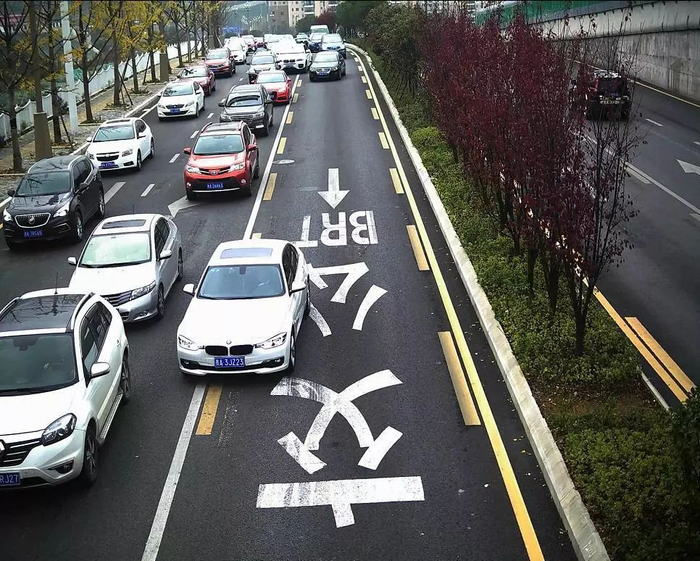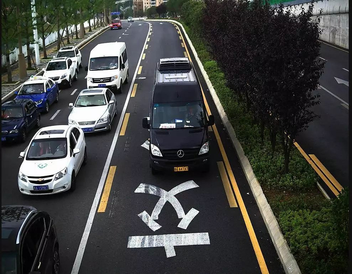 (不允许借道公交车道施划的标线)