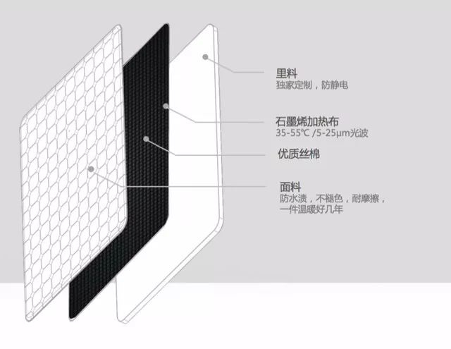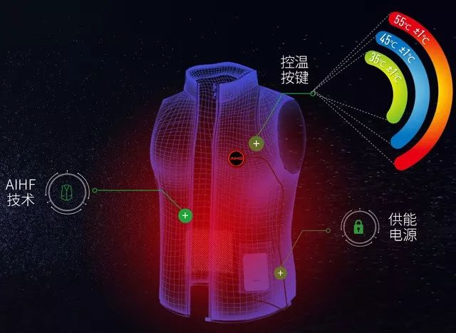 马甲中的石墨烯加热布内置温度传感器,能精准测温,发热均匀,非常安全。