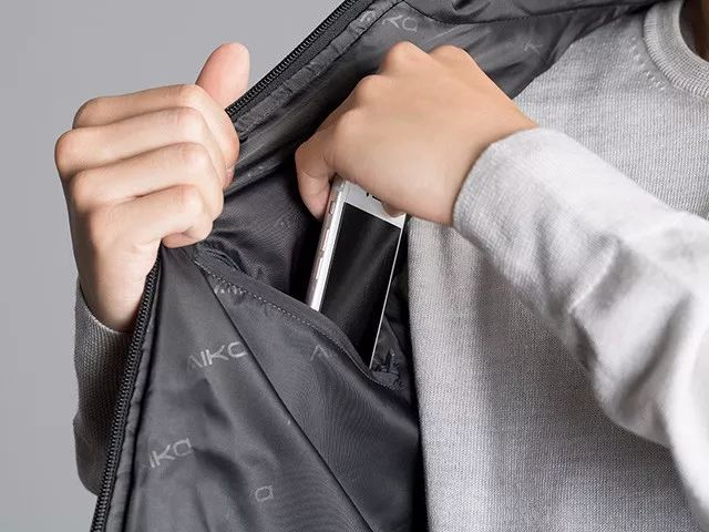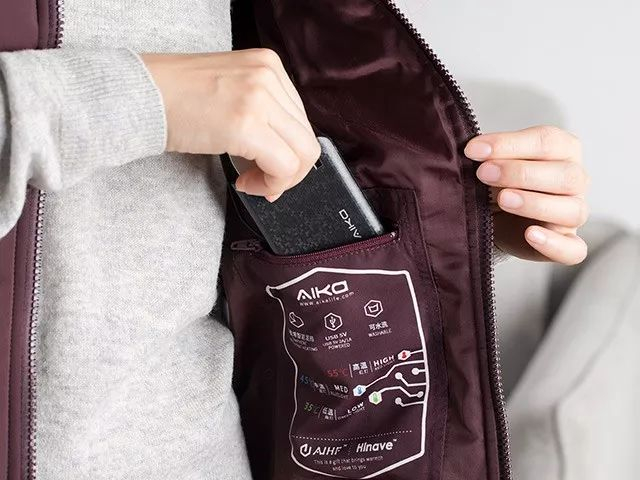 马甲内侧有一个口袋,里面有一个插线口,把它接上充电宝后,马甲就能开启发热功能了。