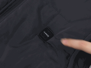马甲左胸上黑色凸起的Logo就是开关键,方便随时调控,一目了然。