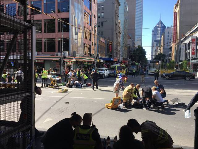 报道说,案发现场位于弗林德斯街和伊丽莎白街交叉口,事发时正是行人穿过十字路口的高峰期,因此很多人被撞伤。