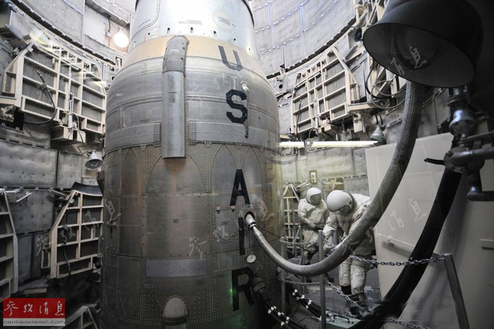从发射井上层看泰坦导弹头部。