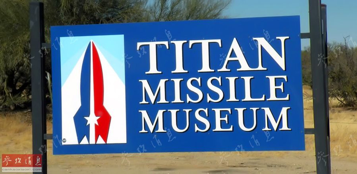 位于美国亚利桑那州南部图森市附近的泰坦导弹博物馆(Titan Missile Museum)是世界上唯一一处游客获准进入的泰坦导弹井。图为博物馆入口标牌。