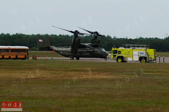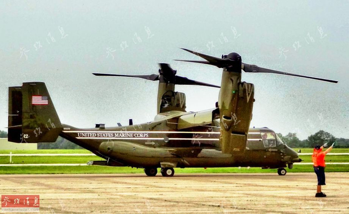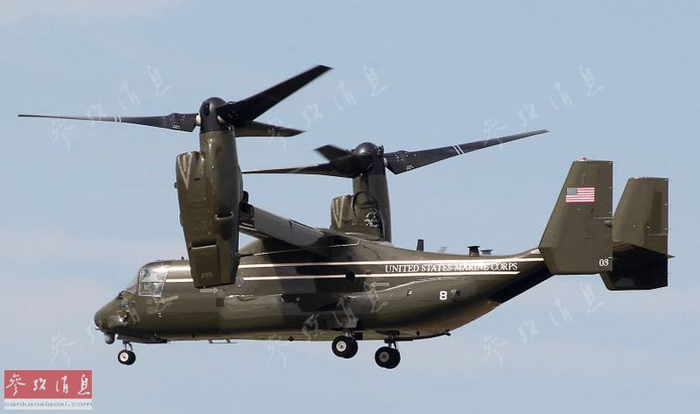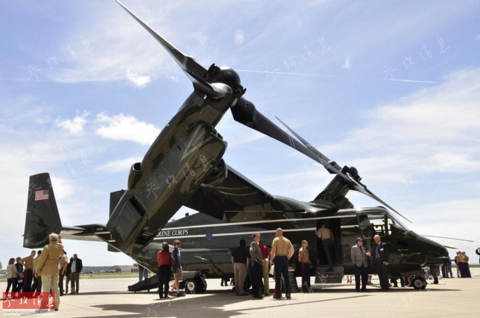 图为总统专机涂装版的MV-22准备起飞。