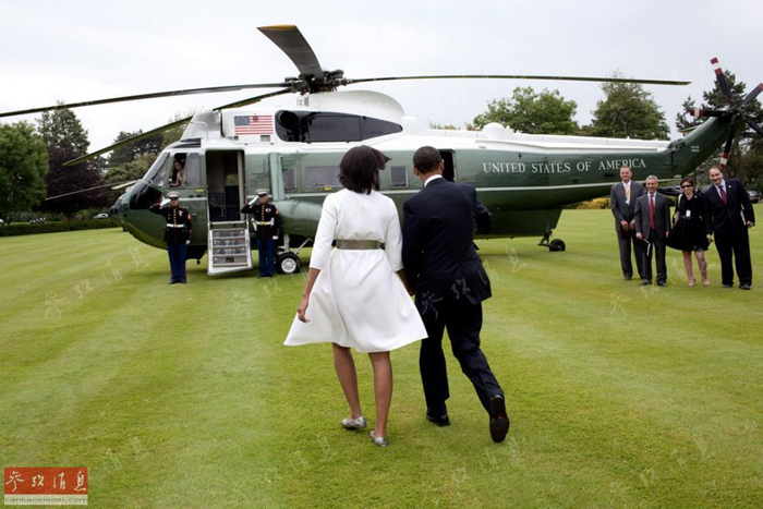 图为美国总统奥巴马和“第一夫人”米歇尔准备乘坐“海军陆战队一号”起飞。