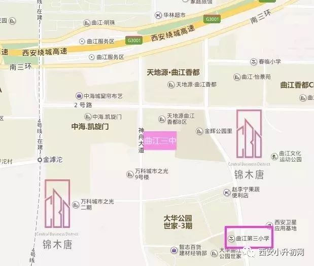 曲江第三中学位于曲江二期上元路东侧,北侧为天地源香都B区,南侧为大华公园世家地块。共规划48个教学班,2400名学生,计划于2019年9月开学,将于近日举办开工仪式。而依据一般的学校工期建设推算,即日开工的曲江三中或为18年9月的开学季提前做准备,以缓解已饱和的曲江一中紧张场地。