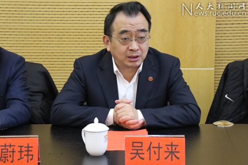 任命会前,重庆大学党委书记周旬会见了吴付来一行。周旬对中国人民大学对重庆大学马克思主义学院建设的支持表示衷心的感谢,并希望在选派挂职干部的基础上,双方在一流学校和一流学科建设中进一步加强合作,尤其是在人才培养、人才队伍建设、学科合作共建等方面开展交流,实现合作共赢。