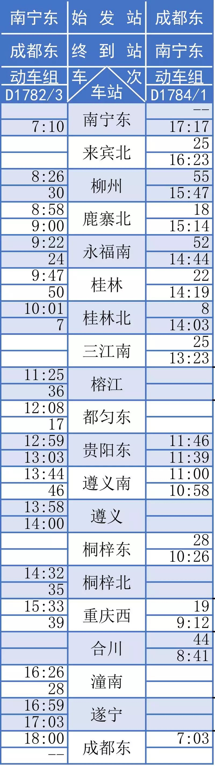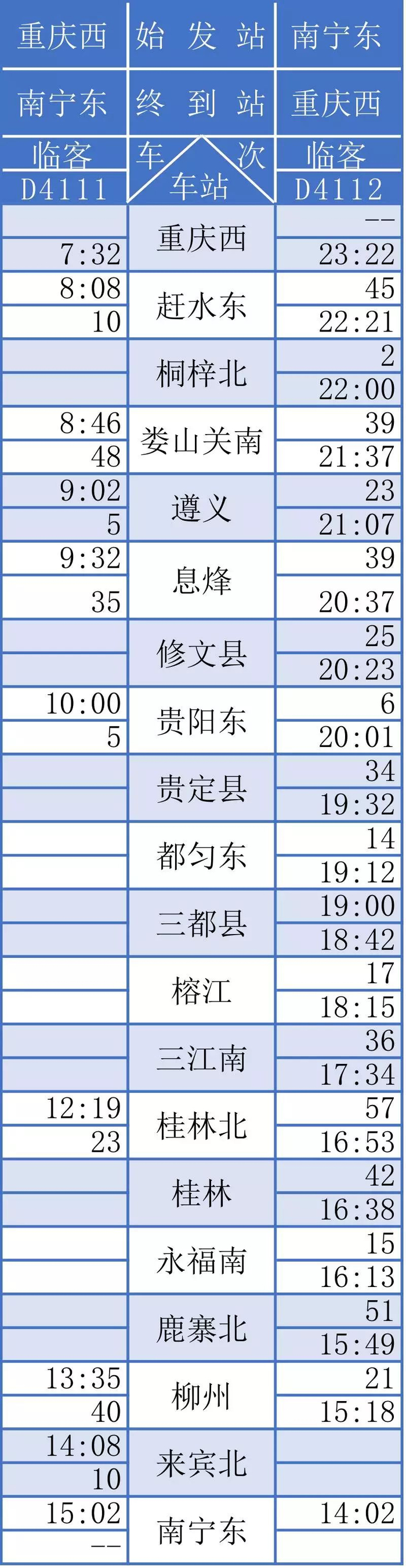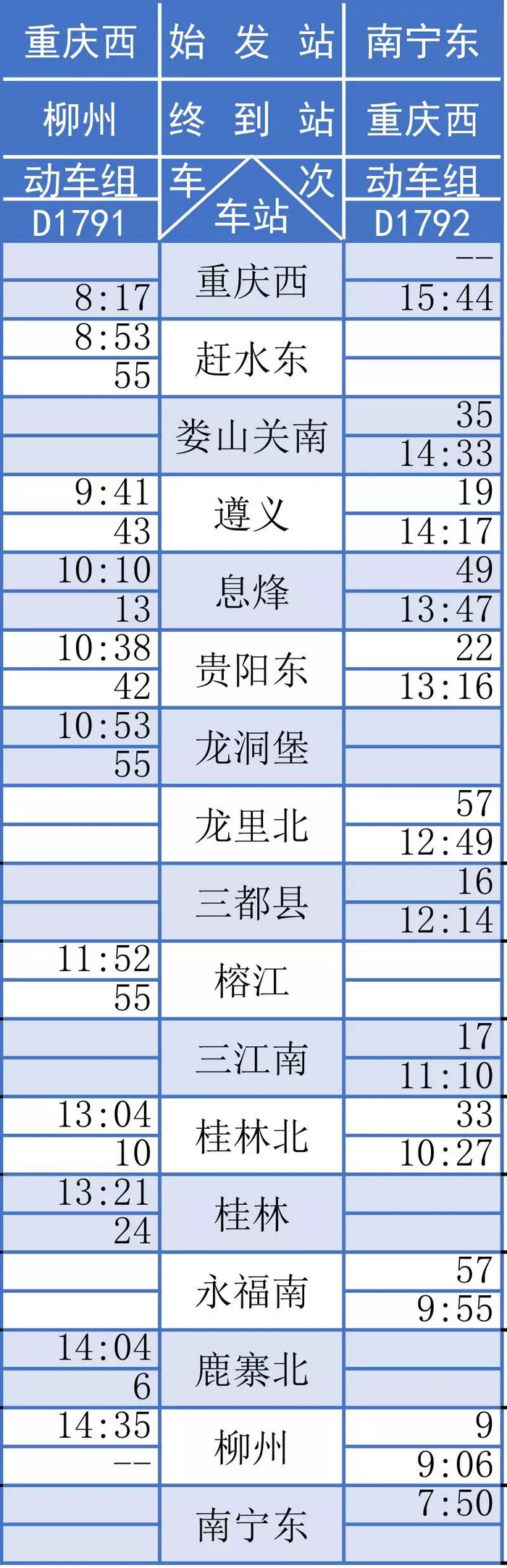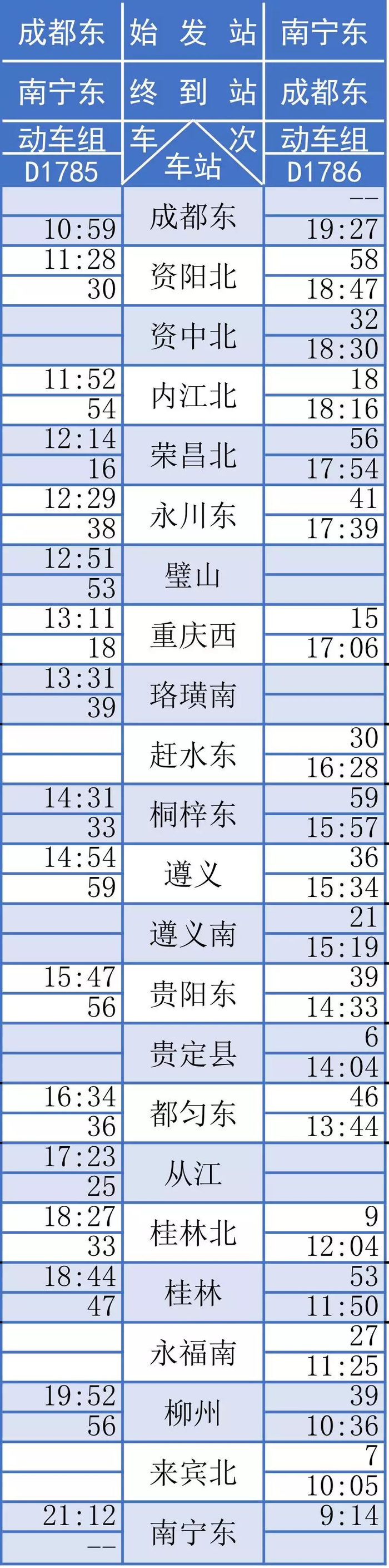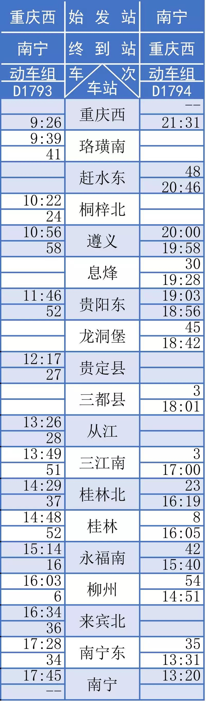 南宁人快看!广西至成都、重庆动车时刻表出炉!