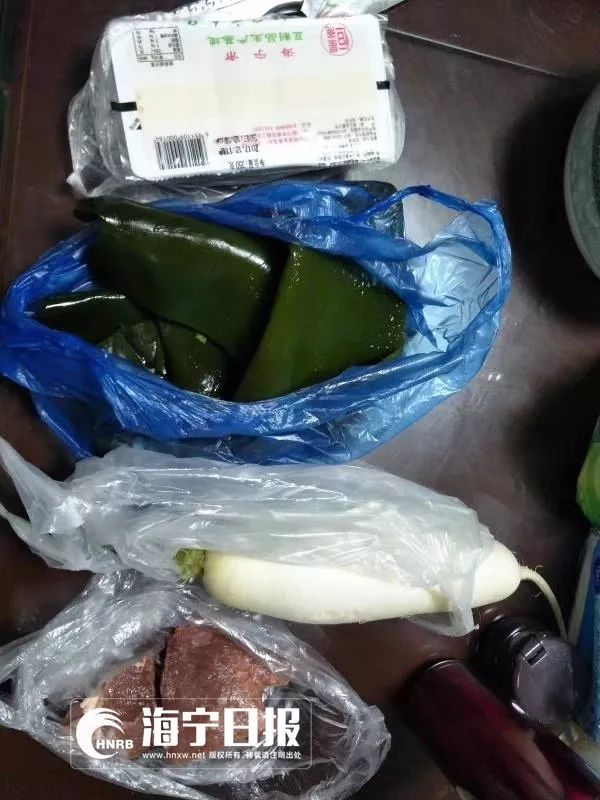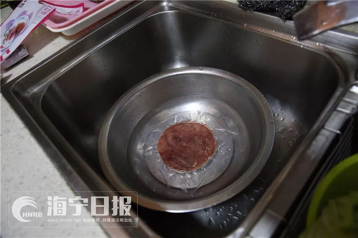 鄢张雅先把冰箱里的冷冻牛排拿出来,放进水里解冻。淘米后把电饭锅插上,之后开始准备烧菜要用的东西。