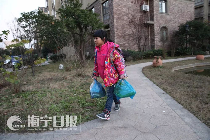 据海宁日报报道,浙江海宁10岁女孩鄢张雅每天一个人放学回家,还买菜做饭等父母回家。