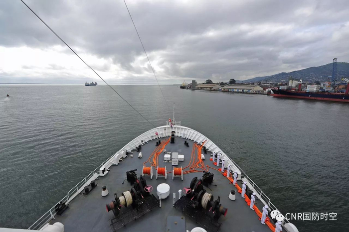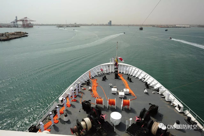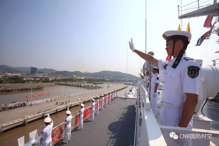 2017年7月26日上午,浙江舟山某军港,中国海军和平方舟医院船缓缓驶离码头时官兵们挥手告别。这是和平方舟继2010年赴亚非5国、2011年赴拉美4国、2013年赴亚洲8国、2014年赴南太4国、2015年赴环太平洋8国执行访问和医疗服务任务之后,第六次执行“和谐使命”任务。江山摄