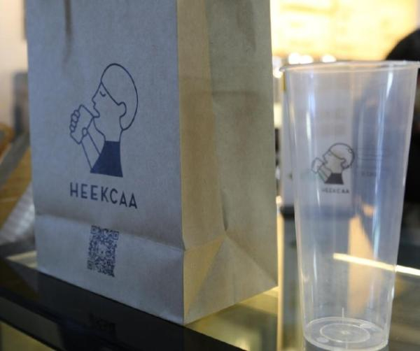 还有商铺在奶茶杯和外包装上使用与喜茶图形商标近似的标识。