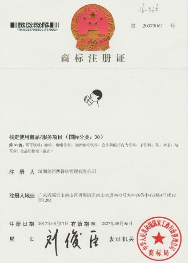 上海市工商局透露,“喜茶”商标权利人美西西公司拥有的注册商标主要有如下几种:中文商标为“喜茶”字样;英文商标为“Heytea”、“HEEKCAA”;图形商标为一正在喝茶的小人。