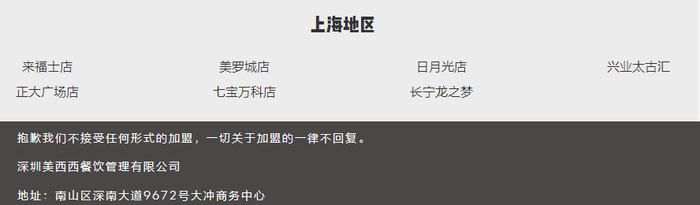 截至12月21日,“喜茶”方面表示,不接受任何形式的加盟,一切关于加盟的一律不回复。根据“喜茶”公司网站显示的信息,“喜茶”目前在沪只有7家门店。