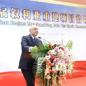 ▲资料图片:2017年7月9日,叙利亚驻华大使伊马德·穆斯塔法在首届叙利亚重建项目洽谈会上致辞。