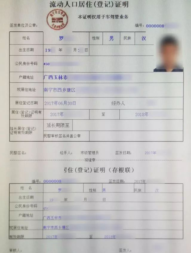 据了解,南宁市公安局人口管理支队和交警支队依托 " 智慧警务 " 建设,推进数据信息共享,研发了电子版的《居住(登记)证明》。据交警支队和人口管理支队负责人介绍,推出此项便民新举措之后,流动人口到居住地派出所或者通过微信自主申报居住登记审核通过后,无需群众到派出所打印领取居住证明,凭居民身份证到交警车管部门就可以直接办理有关车管业务,交警部门通过核查系统的电子《居住(登记)证明》信息,就可以办理有关车驾管业务。