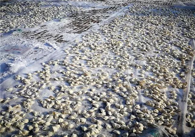 地面摆了数千个饺子。