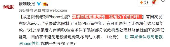 对于苹果限制手机性能一事,网友也炸了。