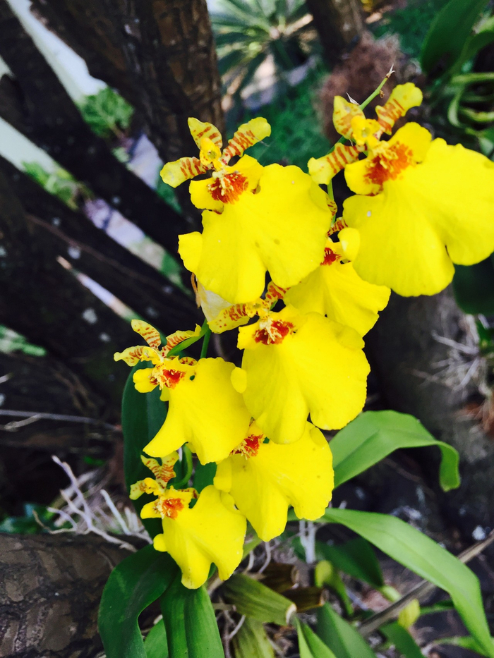 是文心兰天生特别娇贵吗?也不是。包括文心兰在内的洋兰野生时都属附生兰或气生兰,自身具有气生根,依附在树皮、苔藓上利用雨露、空气中的水汽及有限的腐殖质为生,国兰也因此被称为地生兰。与植物界的“吸血鬼”——寄生植物不同,附生兰是“自带伙食”,寄主“包住不包吃”,也因此有了一棵树上几十种植物共同生长的现象。野生兰秀气而不娇气,很少发生病虫害,属于那种“给点阳光就灿烂”的好伺候型。在巴西,随便一个超市就有作为观赏花的文心兰出售,只是此时按生长方式已变成了地生兰。