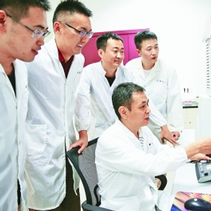 上海交大材料科学与工程学院的教授带领科研团队成员探讨学术。新华社发