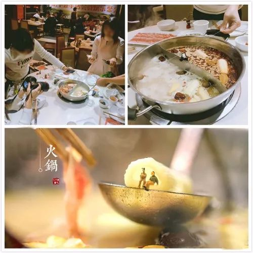 而热气腾腾的火锅,惬意的小人