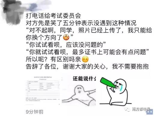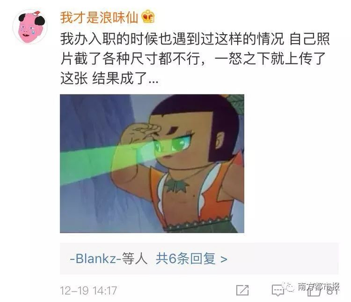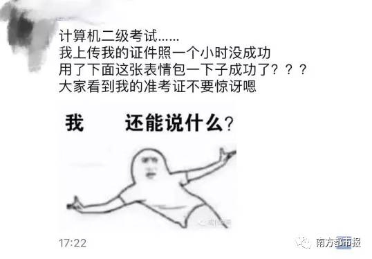 这真不是段子!12月18日,微博网友@明还_ 发布消息称,自己一师兄报名参加全国计算机二级考试时因证件照一直未能上传成功,改换上传表情包图片,未料意外成功上传,难以自行修改。