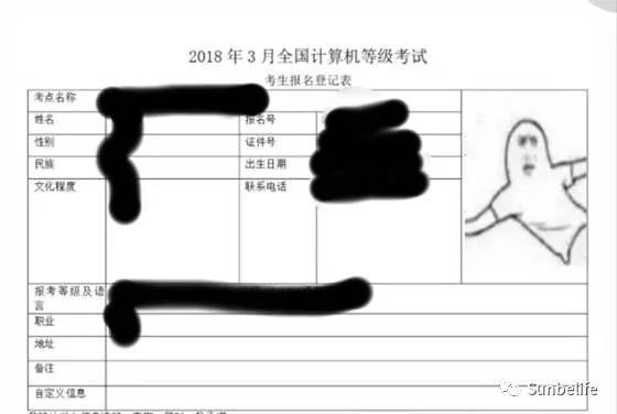 有网友爆料称,她一个师兄报名计算机考试,因为证件照一直上传不成功,所以作死换了张表情包发上去,没想到,啪!一下就成功了。