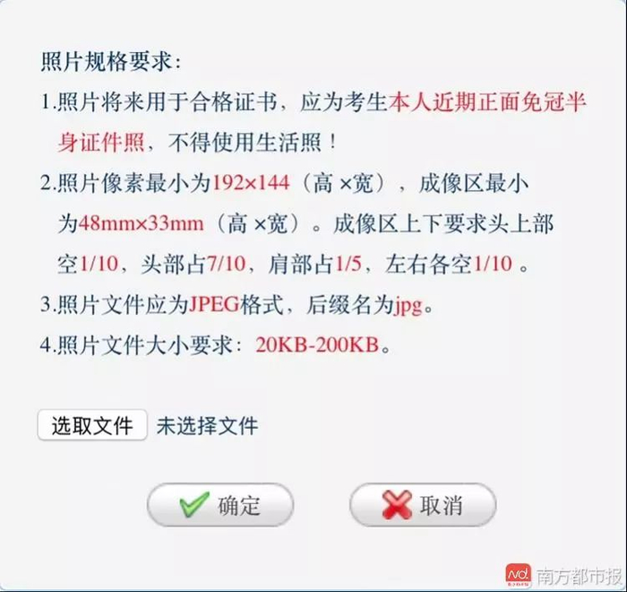 记者登录全国计算机等级考试报名系统发现,报名上传照片时要求照片应为考生本人近期正面免冠半身证件照,对照片的像素、成像区大小、文件格式和大小均做了详细规定,照片将会用于合格证书。同时,报名信息填写完整、上传照片成功后需在1小时内缴费支付,支付成功后照片等个人信息将无法修改。