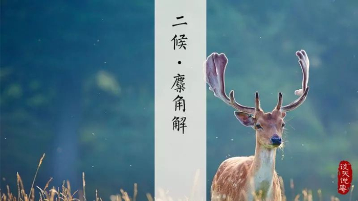 “二候麋角解”:麋与鹿同科,却阴阳不同,古人认为麋的角朝后生,所以为阴,而冬至一阳生,麋感阴气渐退而解角;