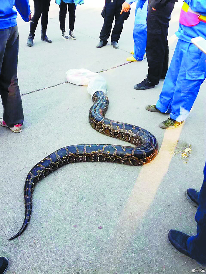 施工人员发现大蟒蛇