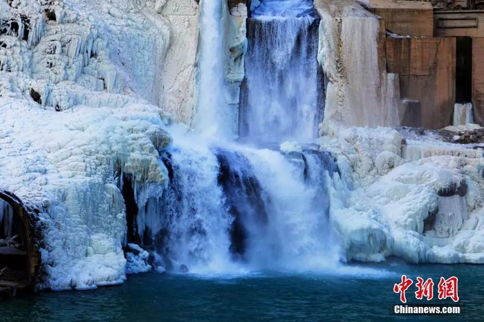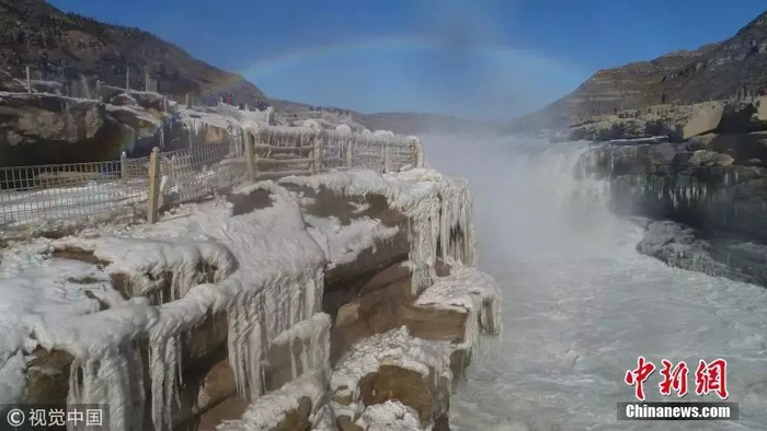 黄河壶口现“冰瀑玉壶”景观。图片来源:视觉中国