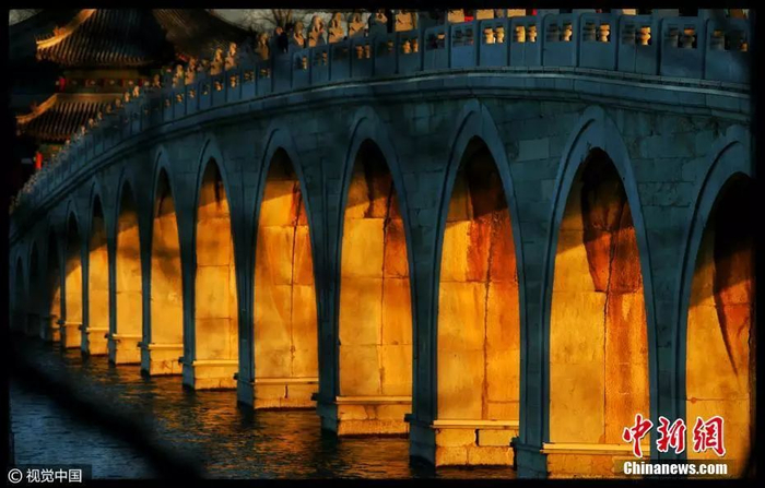 北京石景山莲石湖喷灌形成的冰挂。 图片来源:视觉中国