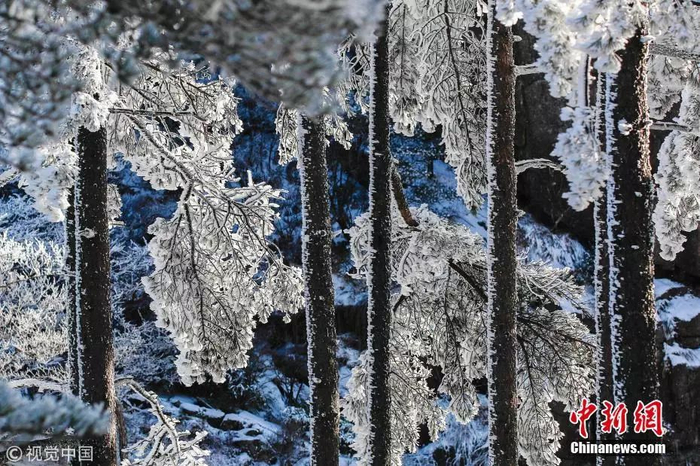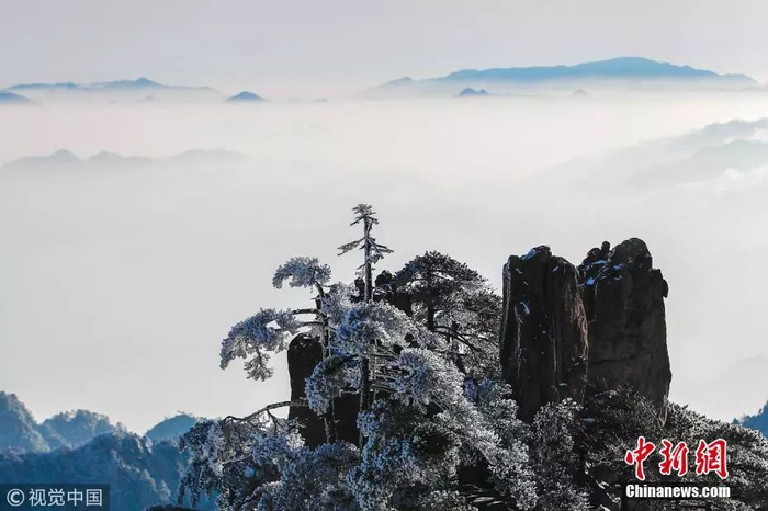安徽黄山现冬日雪凇美景。图片来源:视觉中国