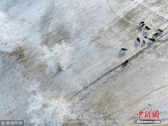 内蒙古呼伦贝尔现雾凇美景,宛如童话世界。图片来源:视觉中国