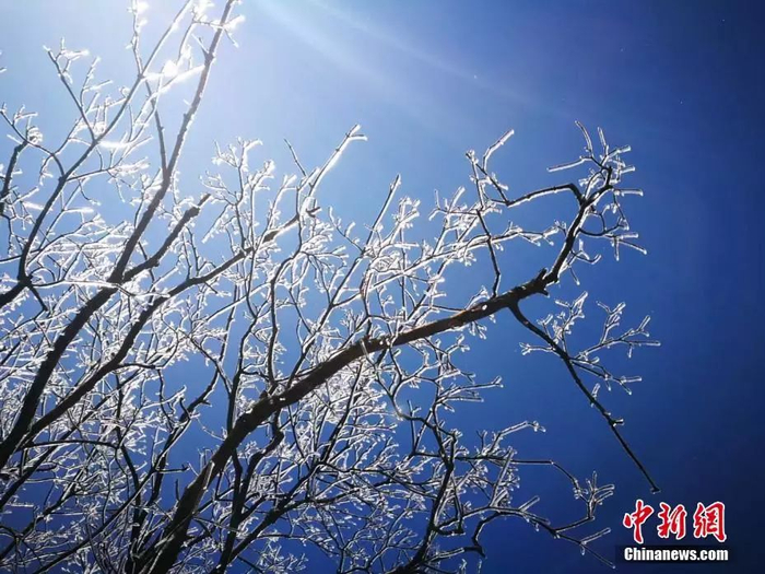 新疆阿勒泰地区现雾凇美景 阳光普照大地。丁宁 摄