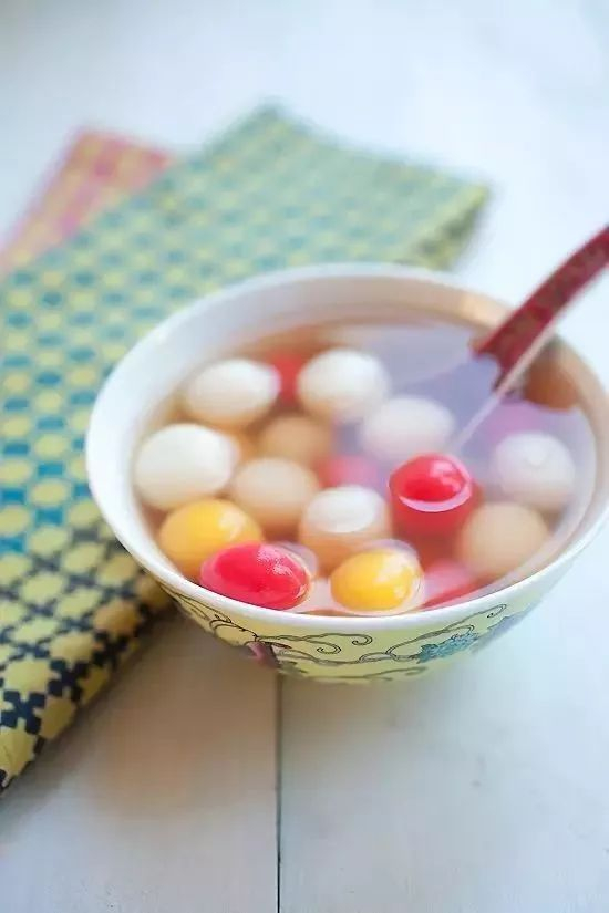 潮汕有“冬节丸,一食就过年”的民谚,俗称“添岁”,表示年虽还没有过,但大家已加了一岁咯。冬节甜丸一般在天亮前煮熟,然后放置一昼夜用于祭祀,等到第二天早上才能吃这碗“冬节丸”。这跟普通汤圆比,颜色更跳跃,象征着对新的一年的美好期待。