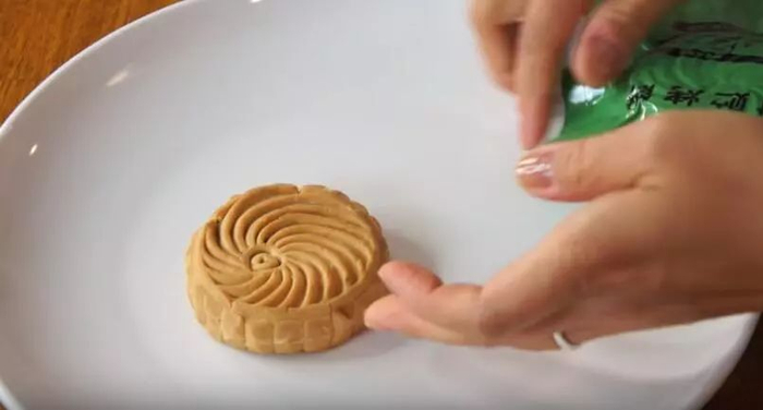 一块干粮被拆出后,博主忍不住惊叹:“好可爱,简直就像个小月饼。”经过品尝,博主评价,这就像一种干果馅儿的月饼,但外皮更干脆,味道中带有花朵的清香。