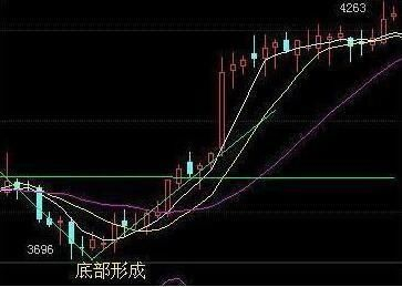 个股长期走跌出现回调后,回升过程中收一根放量的大阳线,之后接连走出三个不断向上的小阳线或十字星,此类形态表明个股后市上涨概率非常大,可立即买进。